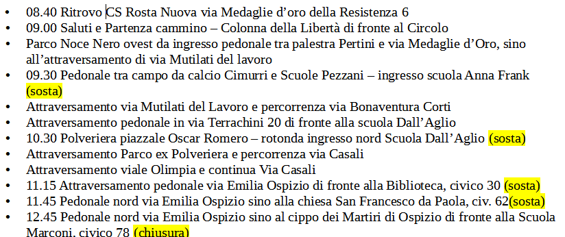 dal Centro Sociale Rosta Nuova in Via Medaglie d’oro della Resistenza