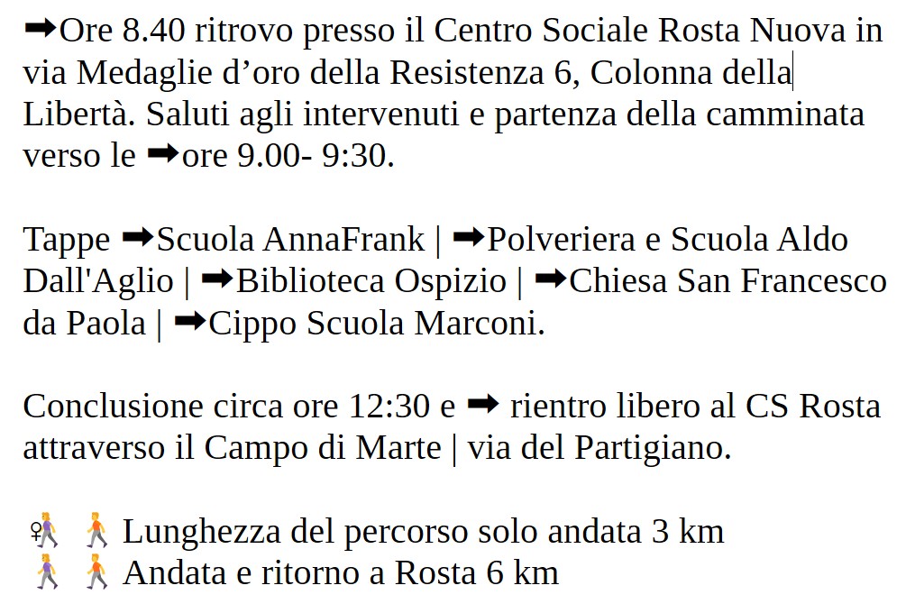 dal Centro Sociale Rosta Nuova in Via Medaglie d’oro della Resistenza