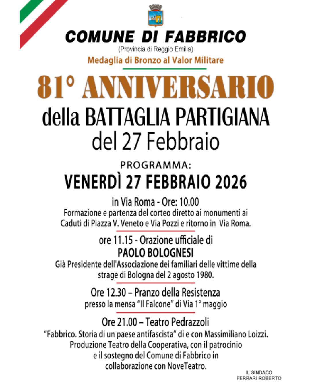 • 27 Febbraio 2026 – 81° Anniversario della Battaglia di FABBRICO